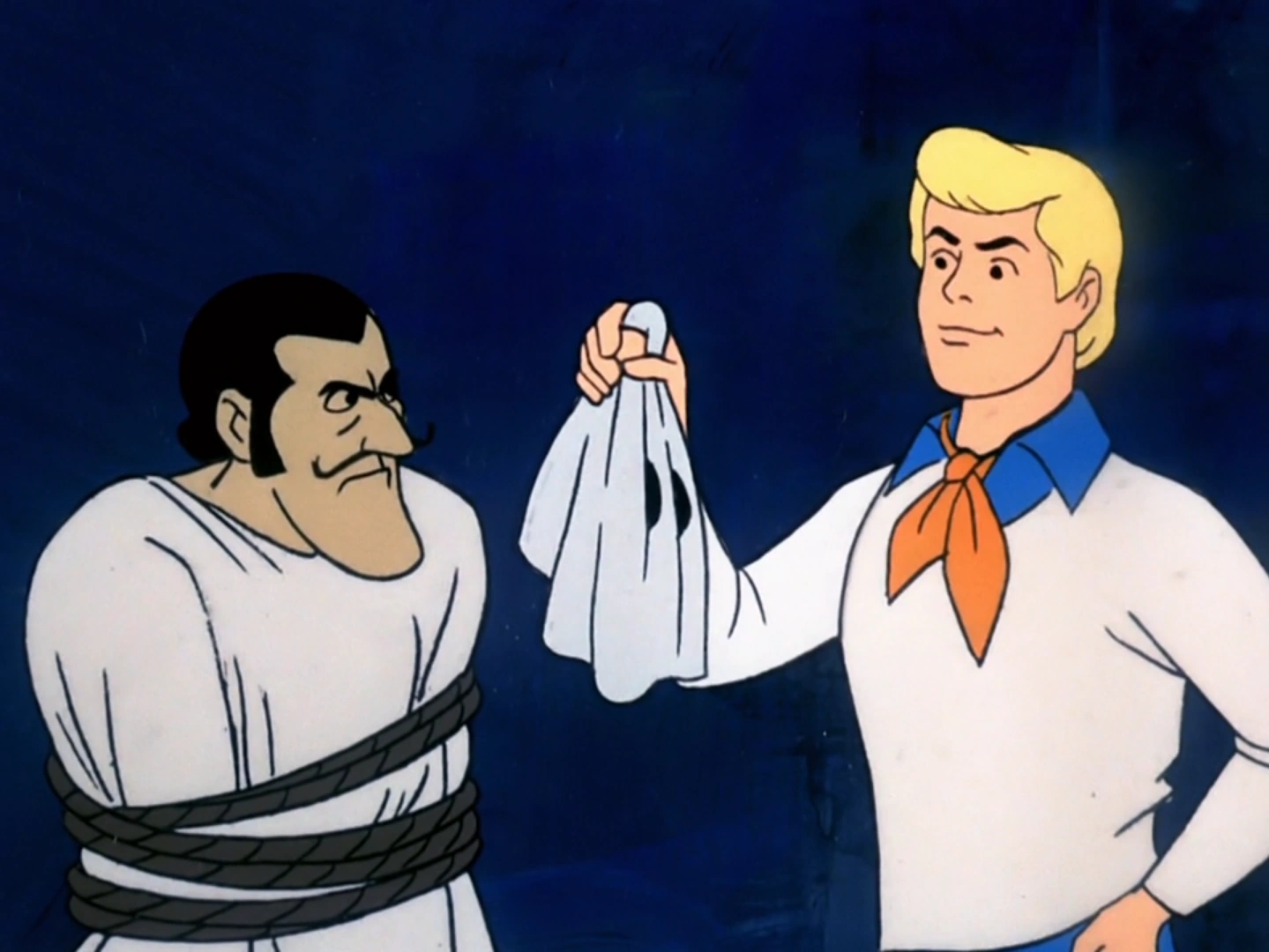 Aunque Scooby arruinó la trampa, logran atrapar al Fantasma y, una vez que llamaron a la policía, descubren que su identidad era la de Malilla el Grande, un ex mago buscado en 6 estados que pretendía asustar a la gente de la isla para buscar el tesoro de Moral. Malilla explica cómo lograba atravesar paredes con un proyector, a lo que llama uno de sus mejores trucos.