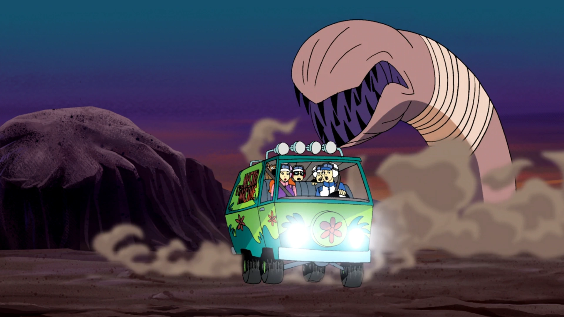 La pandilla intenta evitar que un gusano de arena gigante cause estragos en la Prueba de Resistencia 5000, una carrera fuera de pistas.