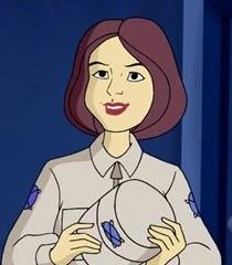 Jest to wysoka kobieta o krótkich, brązowych włosach i czarnych oczach. Ubrana w jasnobrązowy kombinezon, na głowie zaś nosi czapkę z daszkiem w tej samej barwie. Odziana jest również w brązowe buty na obcasie.