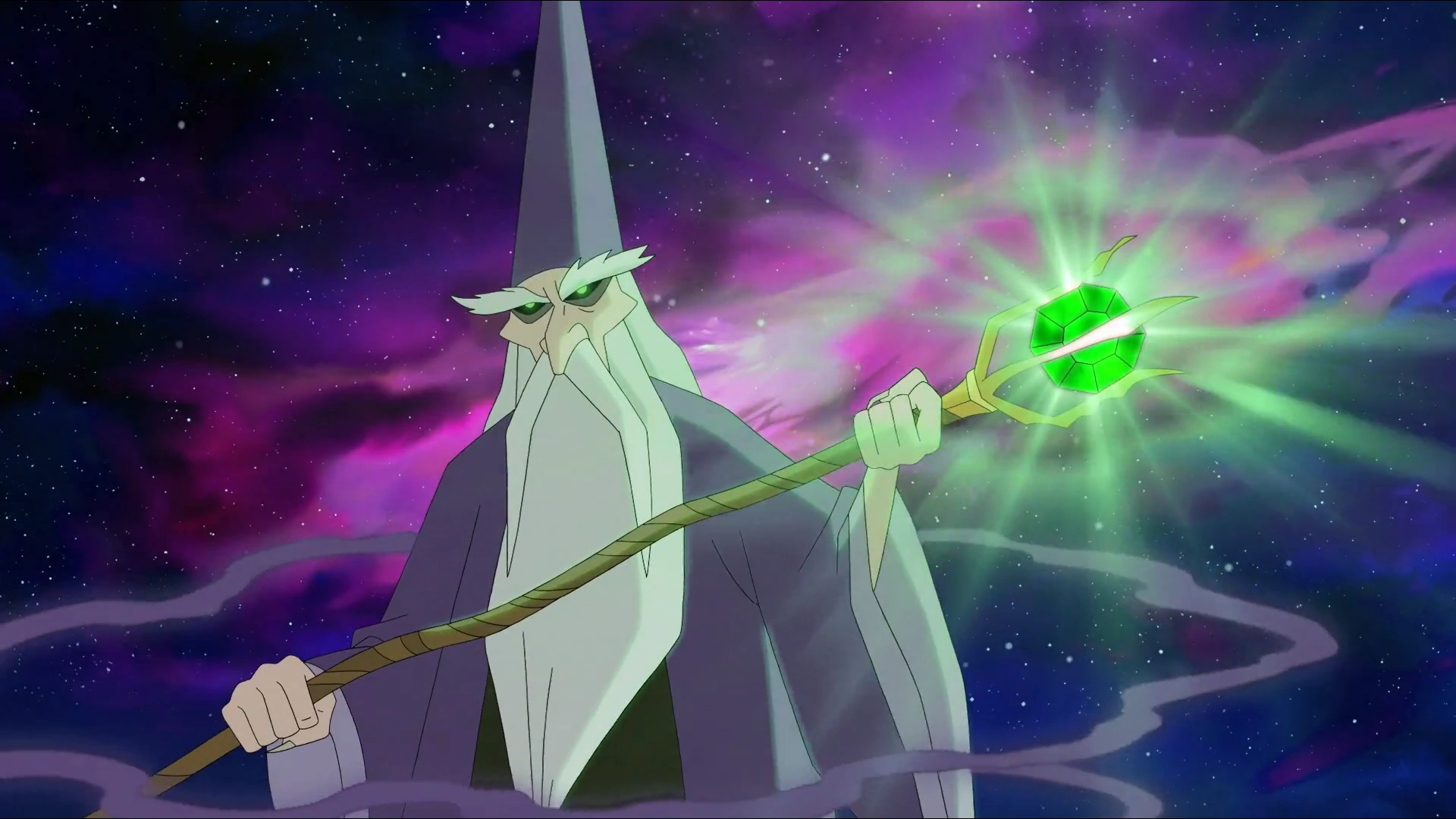 Czarodziej jest wysoką osobą. Jego długa, siwa broda, wąsy, włosy i krzaczaste brwi sugerują, że jest on stary, jednak nie ma zmarszczek. Ta postać ma jasną karnację i czarne oczy z zielonymi źrenicami. Nosi ciemnozielony strój przepleciony dwiema linami, na który ma zarzuconą fioletową sukmanę w obwisłymi rękawami. W prawej ręce trzyma wielką czarodziejską laskę z zielonym kryształem, dzięki której może sterować wszystkimi przedmiotami naokół.