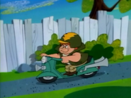 Fred: Przepraszam bardzo, nie widziała pani zbzikowanego chłopca ze szczeniakiem? Kudłaty (przebrany za kobietę i pchający dziecięcy wózek): Przecież to my, baranie. |