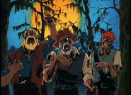 - ↑ Kontrabanda oznacza zwykle skonfiskowane, niebezpieczne rzeczy, jak broń czy narkotyki – Kudłaty i Scooby jednak „konfiskowali” wszystko, co tylko nadawało się do jedzenia.