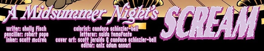 A Midsummer Night's Scream is the first of two stories in Scooby-Doo, Where Are You? #49, by DC Comics. It was followed by the reprint Attack of the 50-Foot Shaggy!