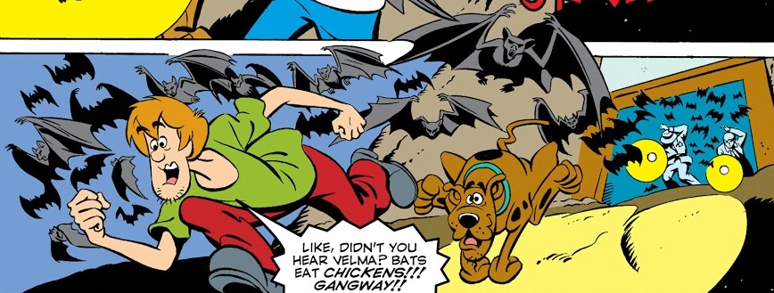 Both creators do redeem themselves. Daphne is a scream. She spots a clue on page two, throughout the mystery looks delectable and actually seems to be in serious danger when the bats attack. Naturally, Daph stoutly surpasses her fear to be her usual valuable, competent self.[1]