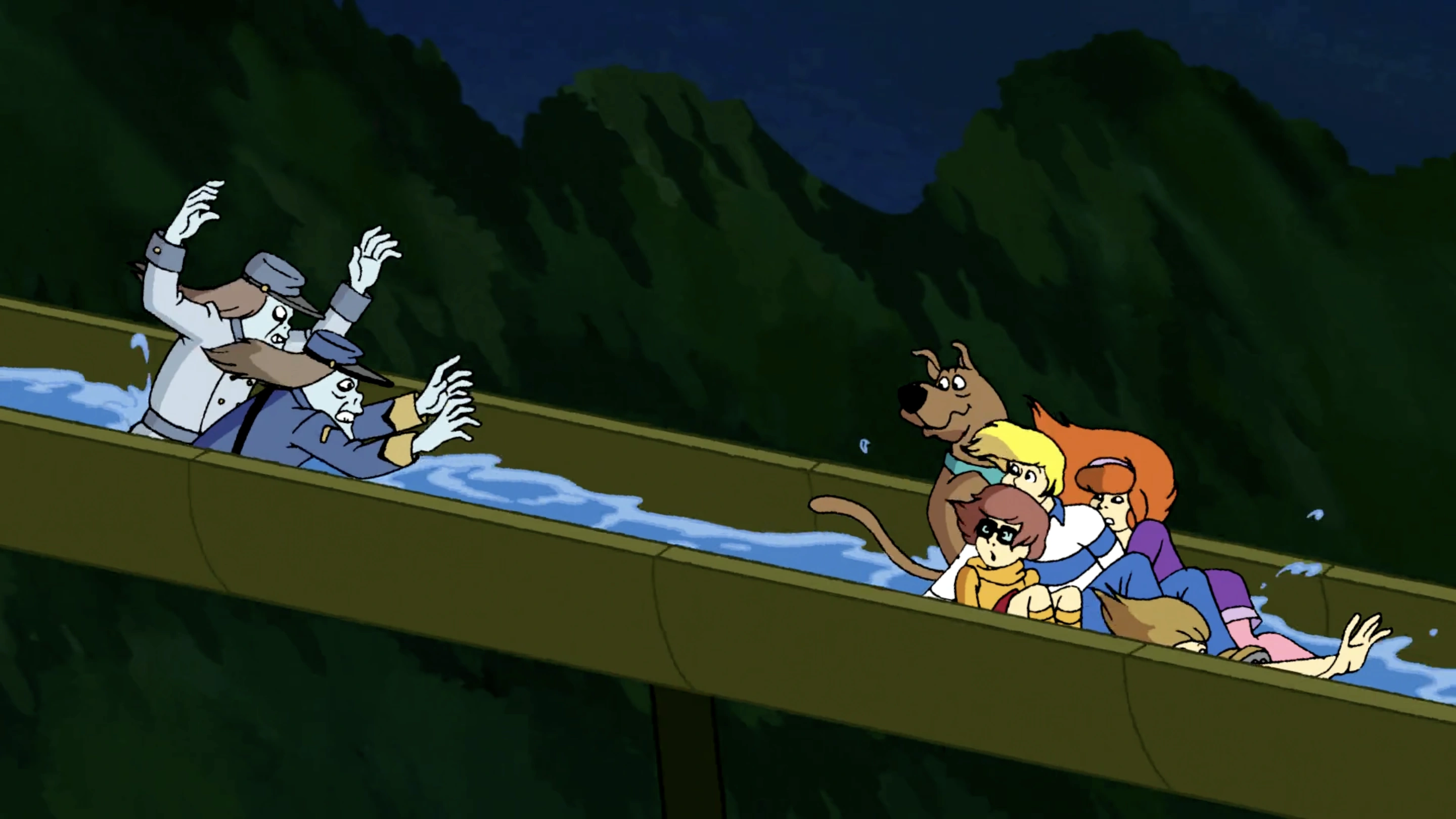 At the waterpark, the gang encountered the ghosts, who chased them all over the waterpark. Finally losing the ghost, the gang encounter Cyrus Bufford, who tell them the ghost scared off all his staff, forcing it to stay closed. The gang then noticed that Daphne was missing, likely taken by the ghosts.