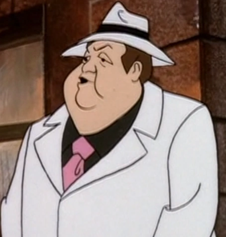 He and the small thug ambushed the trio trying to steal the Maltese Mackerel. He fell with Shaggy Rogers and Scooby-Doo when he stepped on a broken ladder while the small thug got the mackerel from Scrappy-Doo.