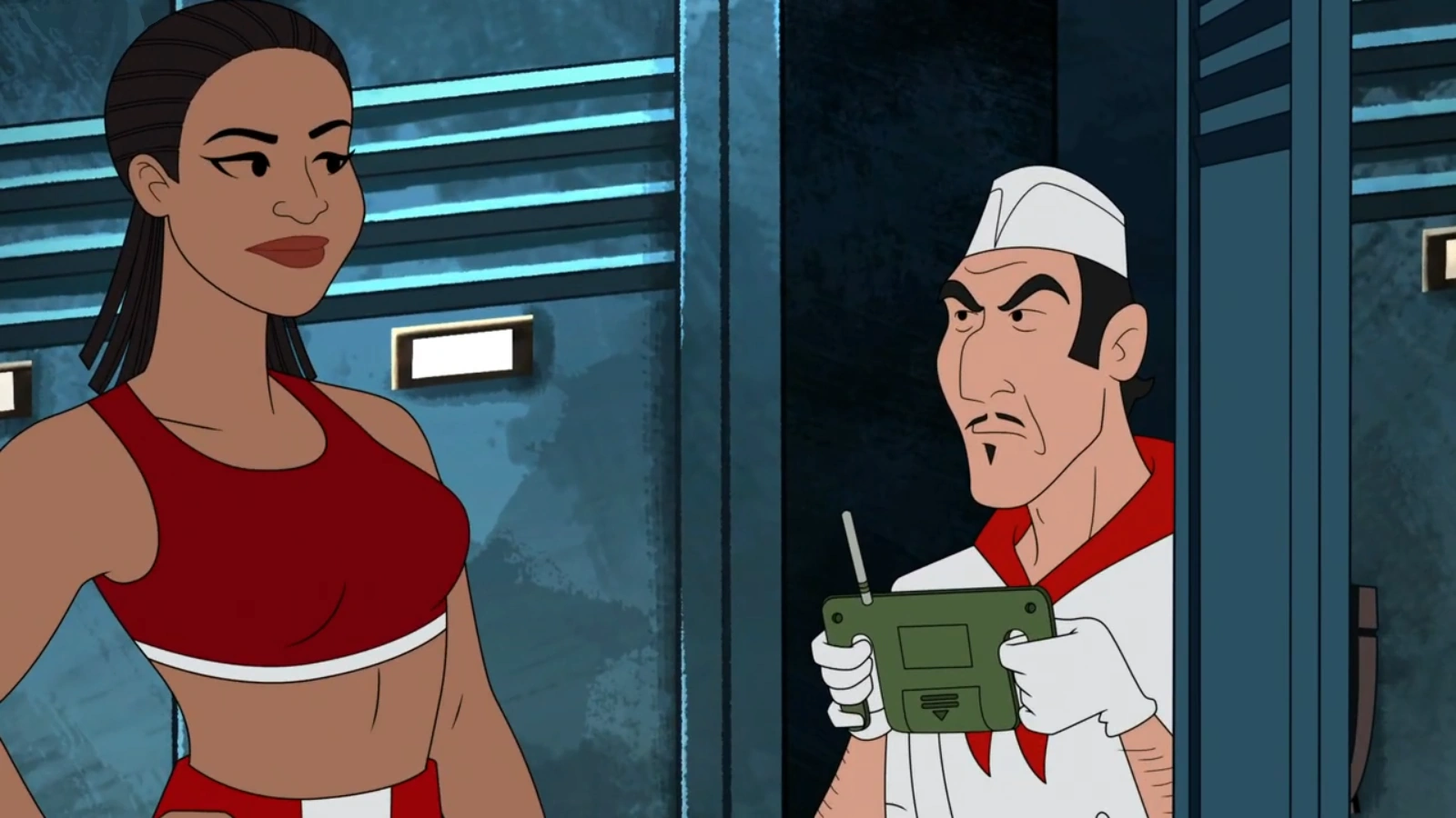 The caterer was presented as a very hostile, unwelcoming man. He angrily confronted Laila Ali for opening a kitchen and stealing her customers, calling her recipes "new-fangled healthy food ideas." His aggressive demeanour was revealed to be an accurate reflection of his true self, as he is not only wrathful, but a greed-motivated treasure hunter. While treasure hunting is not illegal, he resorted to criminal means to achieve his goals, terrorizing a museum and stealing a robot from a military base.