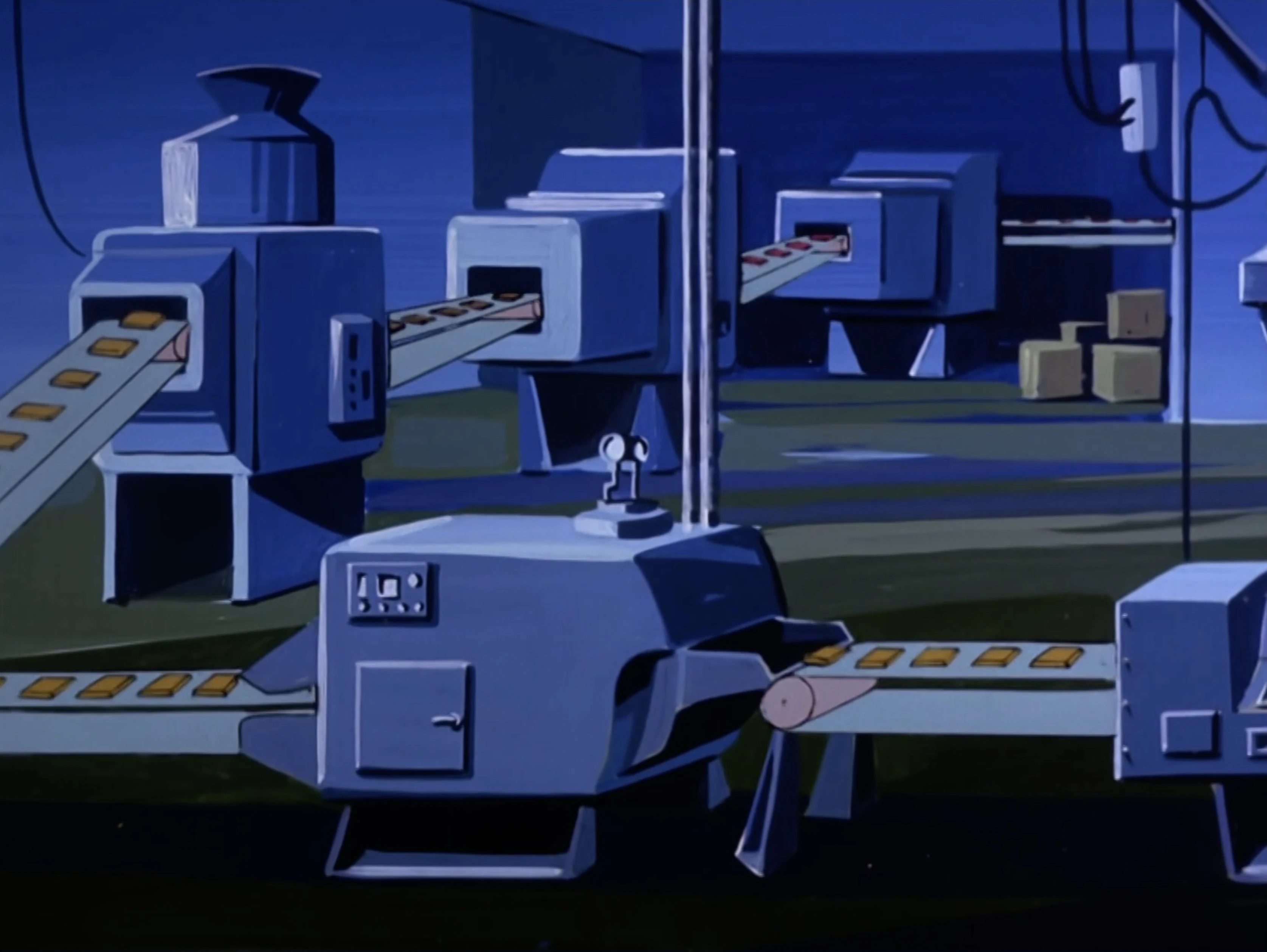 The factory floor of the Sugar Plum Candy Company is used for production and packaging of their various products. This is where the Green Globs spend the majority of their time, producing Cass Elliot's Golden Caramel Bar and boxing them up to ship to Brazil. This is also where the factory's main controls and all of the various candies are found.