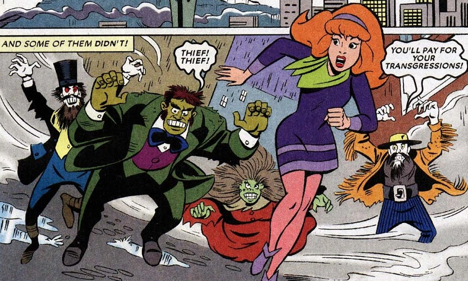 Alex Simmons more openly engages the gang in a real-estate swindle, but one must pay extremely close attention to the artwork and the dialogue in order to solve this puzzle. Whodunnit isn't as important as how the gang solves the crime.[1]