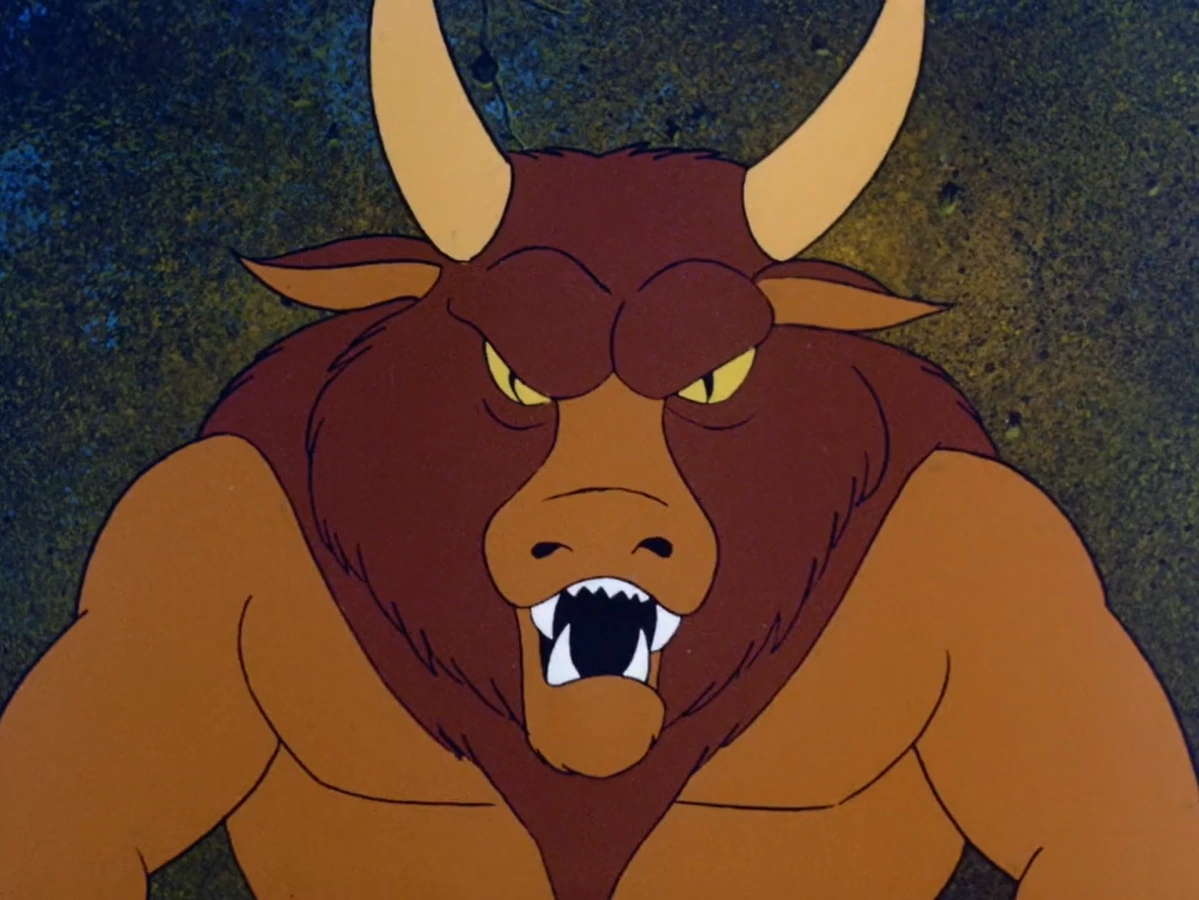 The Minotaur was the disguise of Mr. Kronos, the innkeeper.