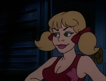 She fell for Shaggy at first sight and wanted to marry him, in spite of the feud between her clan and the Beauregards, of whom Shaggy was a relative. There were a couple of instances where Sadie appeared out of nowhere, grabbing Shaggy and repeatedly kissed him until he managed to break away.