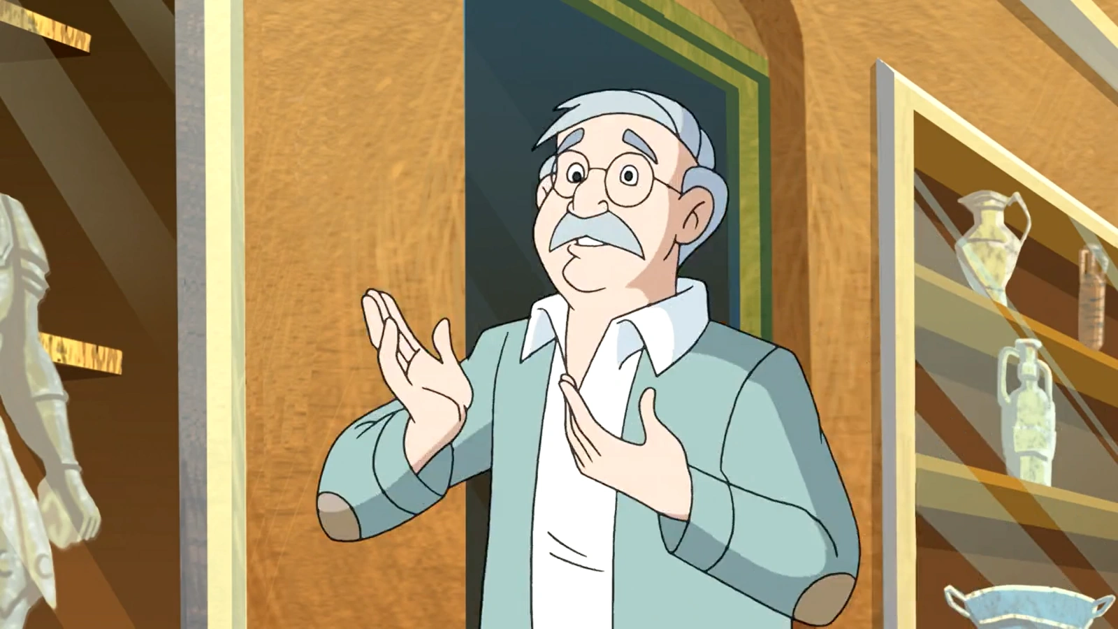 The shopkeeper is an enthusiastic man knowledgeable about Italy and its history, archaeology and society. He provides valuable information to Mystery Inc. which later helps them capture a criminal.