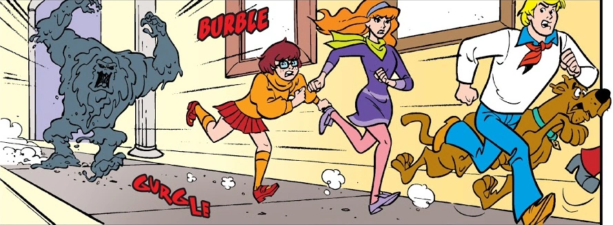 Vincent DePorter substitutes admirably for Joe Staton. His inks are a little heavy at times, but the gang stay to cel-character without stiffness, and expression is the better part of Mr. DePorter valor. Besides, Daphne looks so cute :).[1]