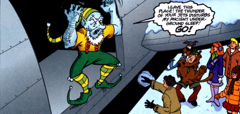 - When attacking Mystery Inc. at the cargo airplane, the Ogre of O'Hare has a white bell on the end of his hat. However, in the next scene in the cargo terminal, the ogre's bell is golden.