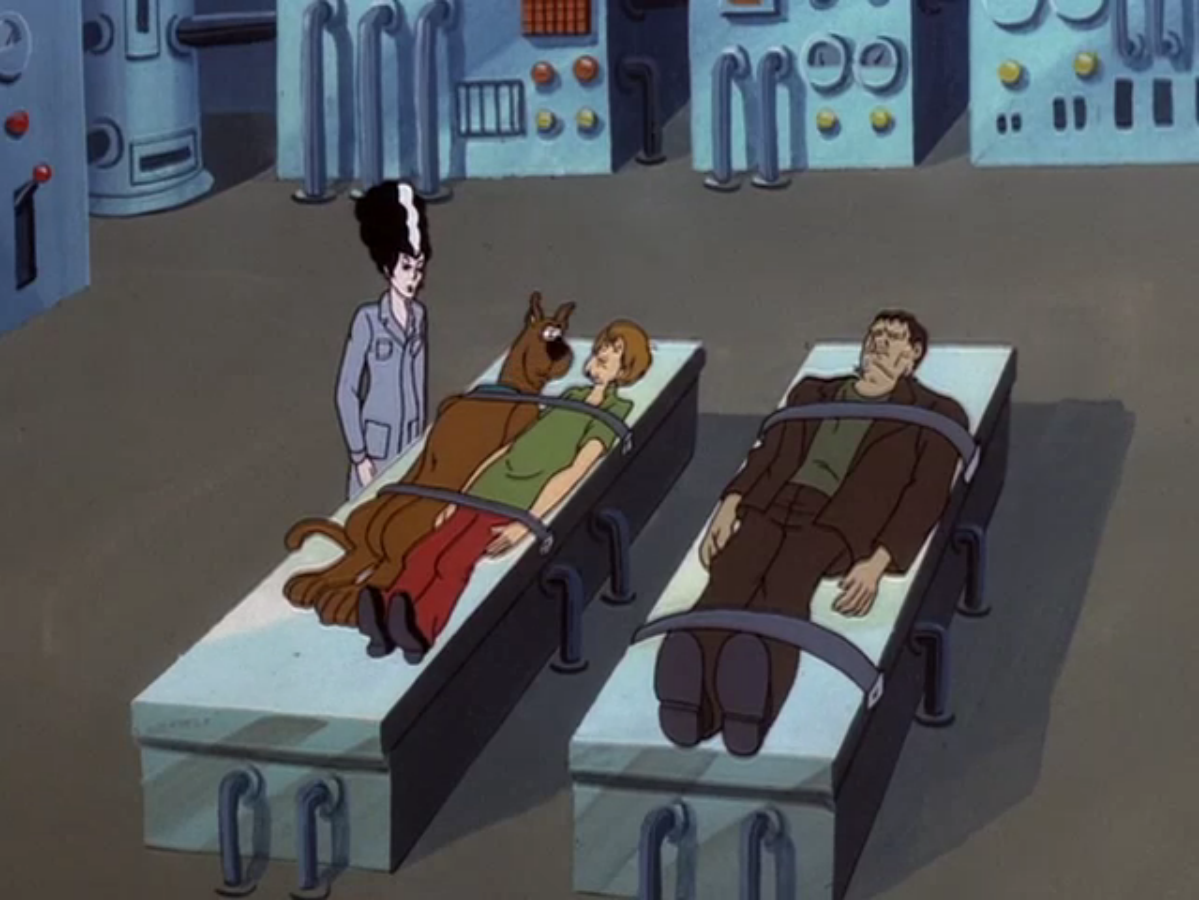 While in Transylvania, the kids read about Frankenstein's monster returning and frightening the town. In order to solve the mystery, the group get hired as babysitters for the residents of Frankenstein Castle, the Draculas.